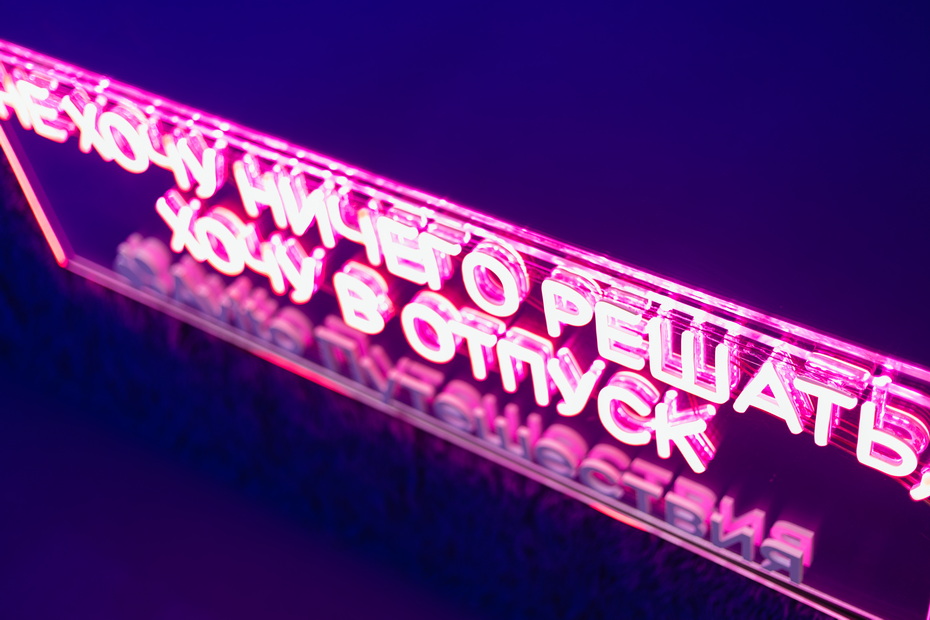 Интерактивная зона находится в центральной части Парка Горького справа от главного фонтана. В центре инсталляции — павильон с несколькими комнатами, каждая из которых посвящена определенному этапу путешествия: от выбора жилья и заселения до отдыха и возвращения домой. Площадка насыщена арт-объектами для эффектных фото в социальных сетях: огромный прозрачный чемодан на входе с призывом «Не забудь себя в отпуск», комната в неоновом оформлении с плюшевой обстановкой, большое количество зеркал, зона с перевернутым бассейном.