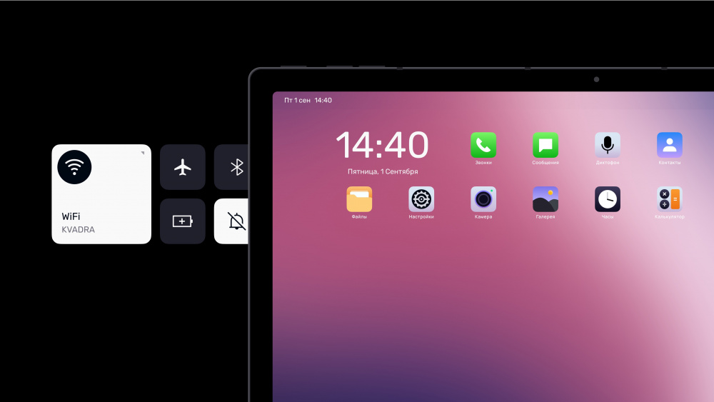 Новый планшет KVADRA_T работает под управлением собственной операционной системы kvadraOS, совместимой с широким спектром программ и устройств. Алгоритмы работы kvadraOS позволяют взаимодействовать с современными сетями связи и отвечать запросам пользователей, которые ожидают высокого качества связи и скорости передачи данных от устройства.