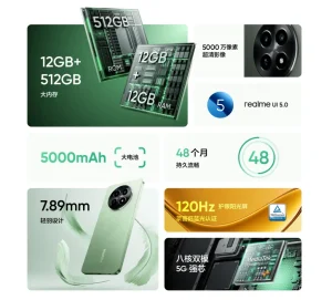 За производительность отвечает процессор MediaTek Dimensity 6100+ и 12 ГБ оперативной памяти плюс столько же виртуальной. Поверх Android 14 установлена оболочка Realme UI 5.0. Ёмкость батареи здесь 5000 мАч, мощность зарядки составляет скромные 15 Вт.